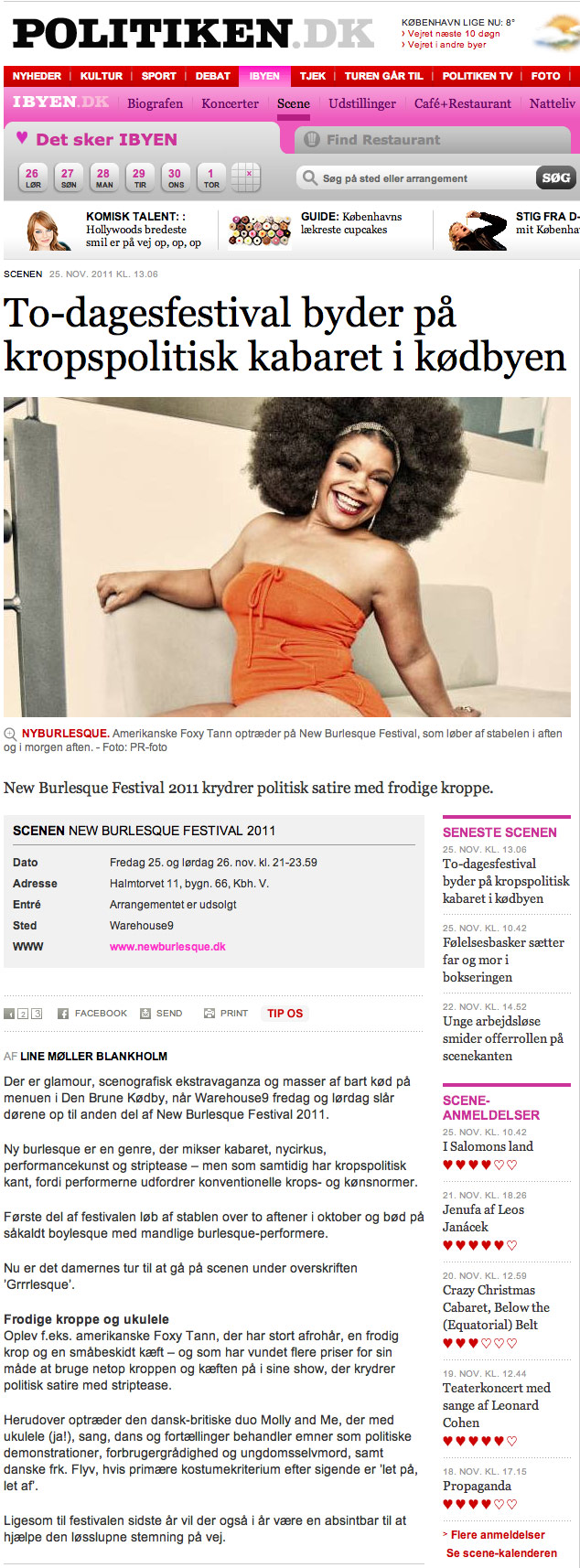 Experience of the Week! – Thursday 1. December 2011 information – Kultur “Kulturen i tal – Ugens Oplevelse”